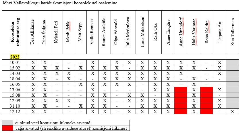 Vallavolikogu komisjonide koosolekute protokollid (2016-2024) on leitavad Jõhvi Vallavalitsuse avalikust dokumendiregistrist.