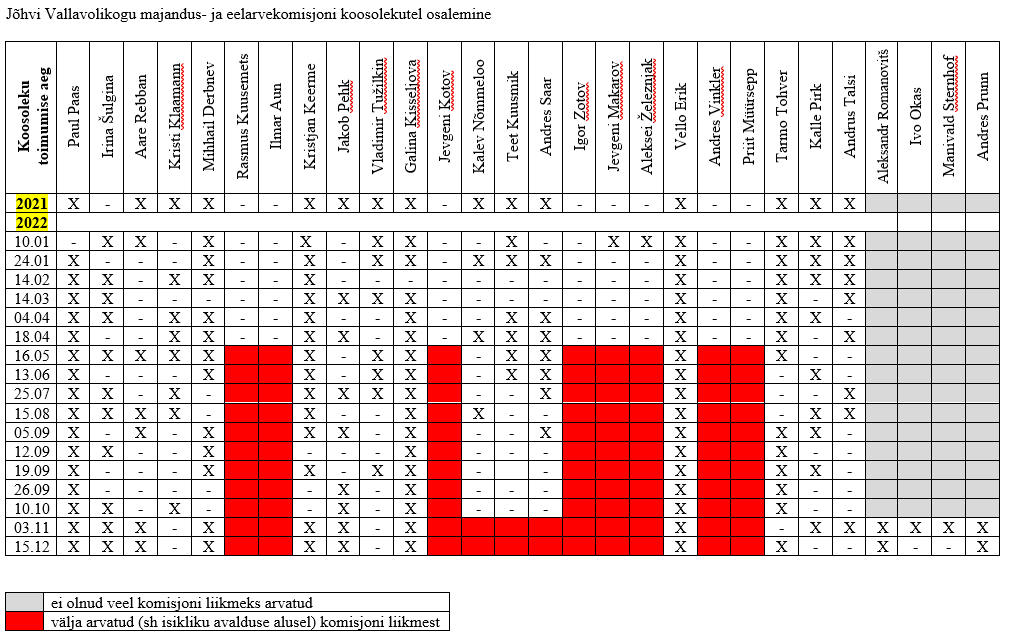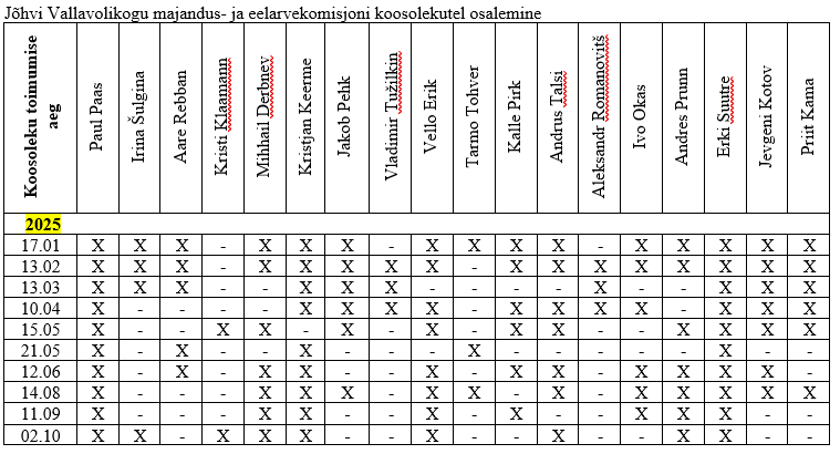 MAJANDUS- JA EELARVEKOMISJON - komisjoni koosolekute protokollid: 2025 ja osalemine: 2021-2022, 2023, 2024, 2025