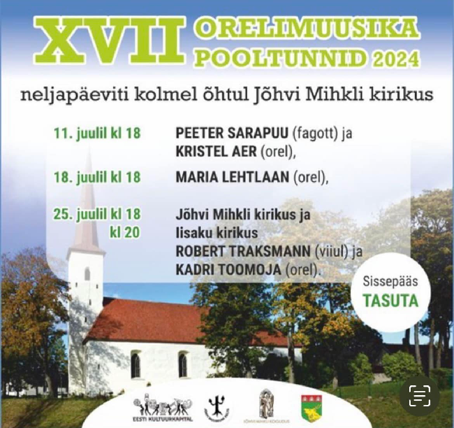 Jõhvi Mihkli kirikus toimuvad juulis kolmel järjestikusel neljapäeva õhtul XVII minifestival „Orelimuusika pooltunnid" kontserdid, korraldajaks Lasnamäe muusikakooli direktor Erika Jefimova koostöös Jõhvi Muuseumi Seltsi ja EELK Jõhvi Mihkli kogudusega.