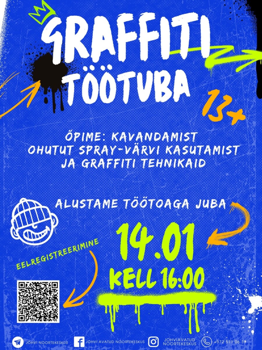 Töötuba toimub Jõhvi noortekeskuses (Hariduse 3, Jõhvi) ning saab alguse juba 14.01.2026 algusega kell 16:00 ning hakkab toimuma iga kolmapäev.