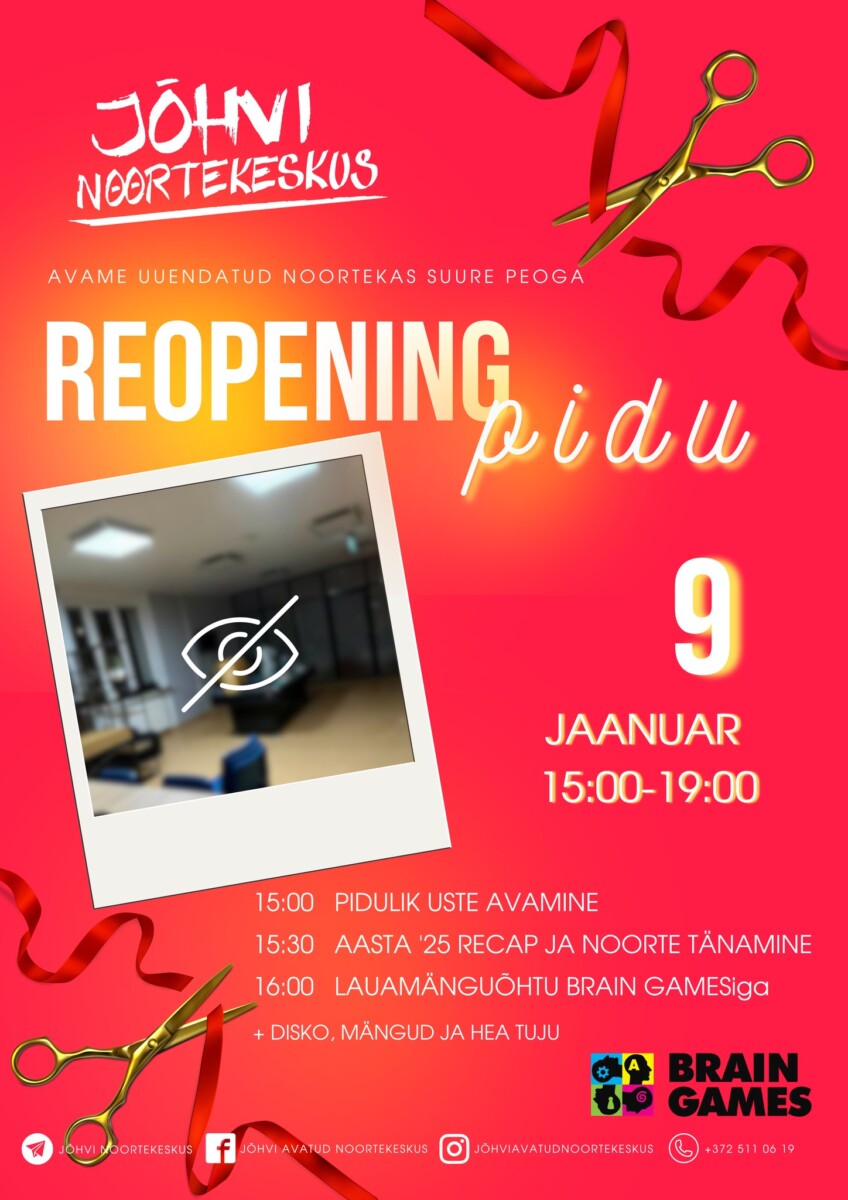Oleme olnud remondi tõttu kinni terve kuu, aga nüüd oleme valmis sulle tõelise uusaastakingituse tegema – uuenenud Jõhvi Noortekeskus avab uksed!