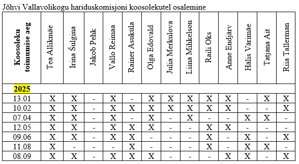 MAJANDUS- JA EELARVEKOMISJON - komisjoni koosolekute protokollid: 2025 ja osalemine: 2021-2022, 2023, 2024, 2025