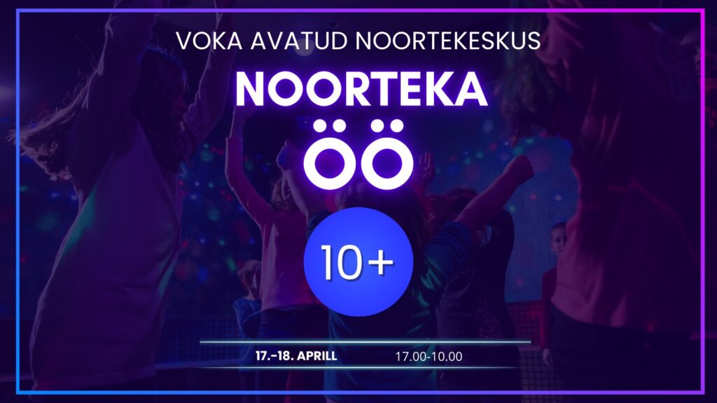 Tule veeda 17.-18. aprill unustamatu öö Voka Avatud Noortekeskuses üritusel NoortekaÖÖ 10+!