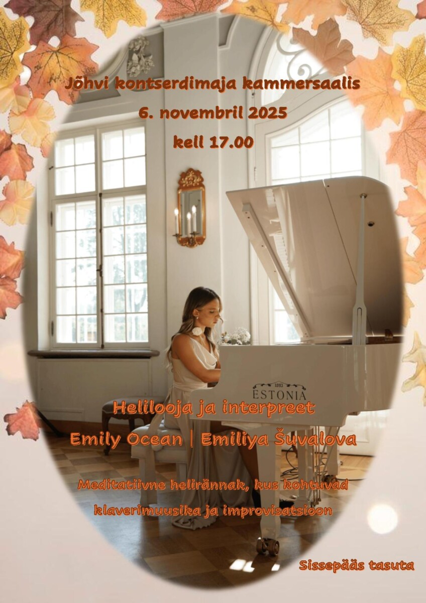 Helilooja interpreet Emily Ocean / Emilya Šuvalova Meditatiivne helirännak, kus kohtuvad klaverimuusika ja inprovisatsioon.