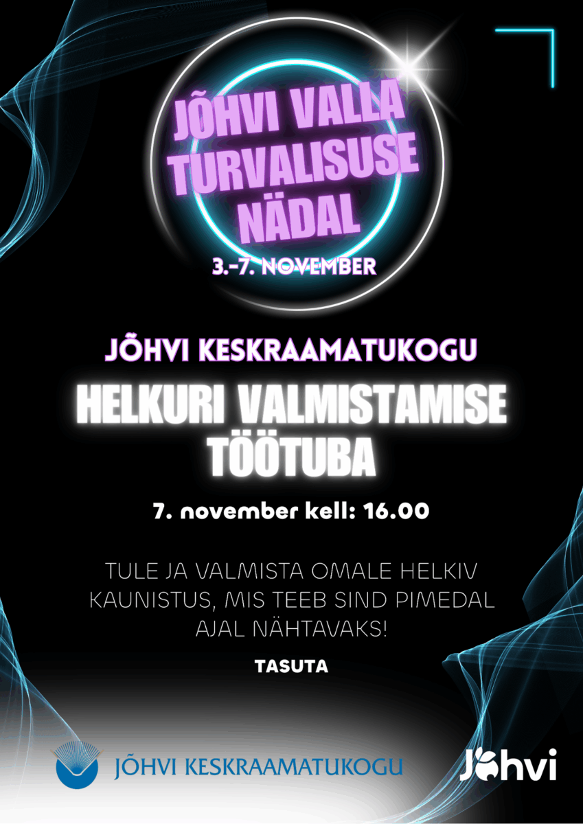Jõhvi noortekeskus korraldab helkurite valmistamise õpitoa. Tule ja valmista omale tasuta helkiv kaunistus, mis teeb sind pimedal ajal nähtavaks! Oodatud on kõik huvilised, väikesed ja suured! Töötuba toimub Jõhvi valla […]