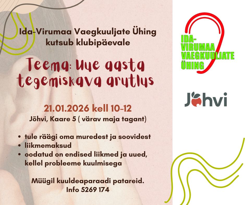 Teemad: tule räägi oma muredest ja soovidest liikmemaksud oodatud on endised liikmed ja uued, kellel probleeme kuulmisega Müügil kuuldeaparaadi patareid. Info 5269 174