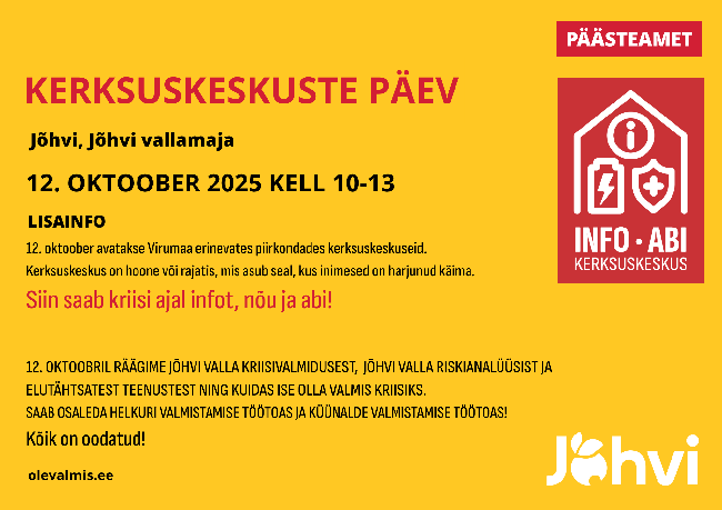 Pühapäeval, 12. oktoobril avatakse Ida- ja Lääne-Virumaal kokku 20 kerksuskeskust, et tutvustada kriisi ajal keskuses pakutavaid teenuseid ja juhendada elanikke kriisides paremini hakkama...