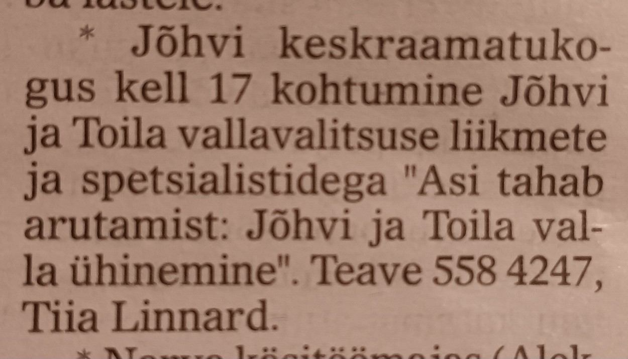 - veebruar 2025 Jõhvi Teataja “Jõhvi ja Toila valla ühinemisest”, lk 1